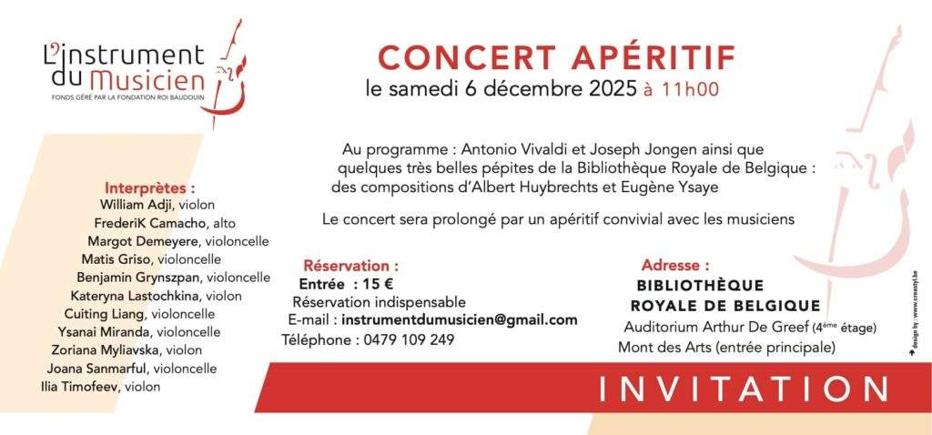 Au programme : Antonio Vivaldi et Joseph Jongen ainsi que quelques très belles pépites de la Bibliothèque Royale de Belgique : des compositions d’Albert Huybrechts et Eugène Ysaye.